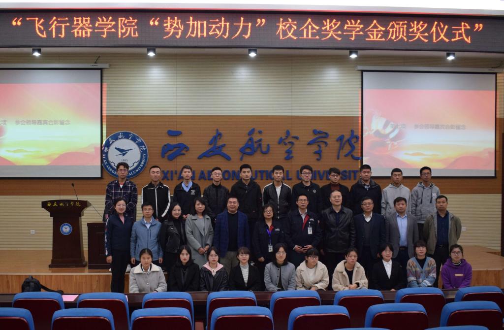 随后。杨光宣布获奖名单。由曹浩波、董彦非、魏广生、彭玉海为获奖学生颁奖。飞行器制造工程2119班王艳丽同学作为获奖学生代表发言。王艳丽表达了对西安势加动力科技有限公司、学校和老师培养的感谢。并表示自己将已获得此次奖学金为契机,努力学习,报效国家和社会。