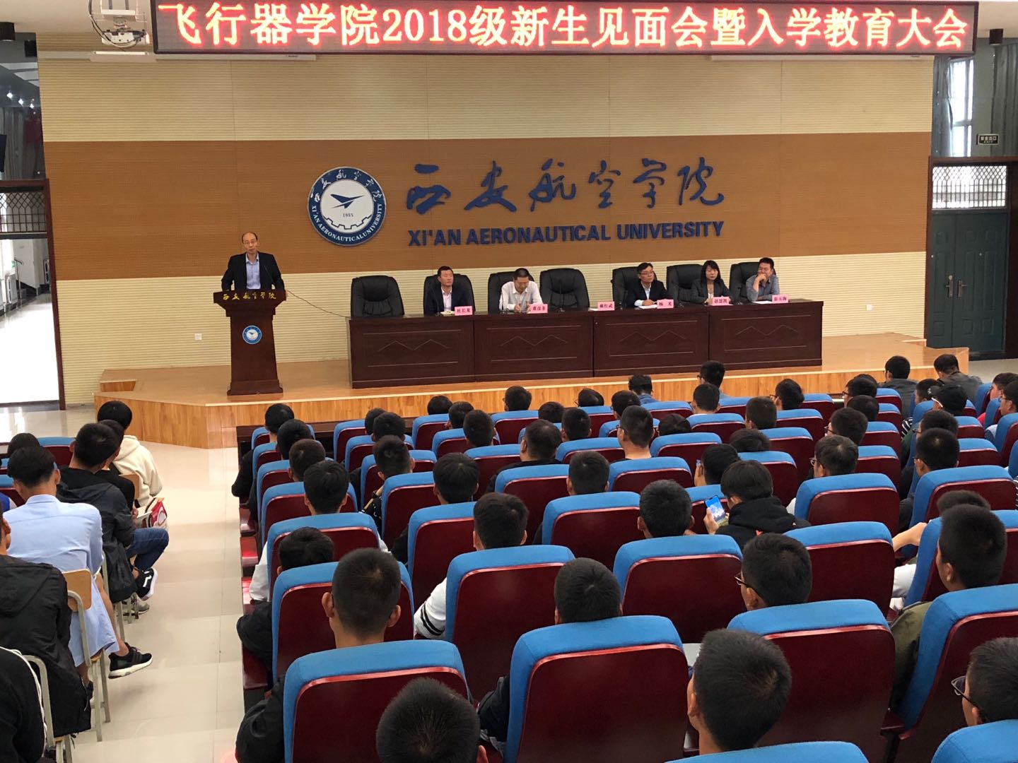9月20日上午,beat365在阎良校区阶梯一报告厅举行2018级新生见面会暨入学教育大会。院长郝红武、党总支书记董彦非、党总支副书记杨光、学生管理科科长杜长龙、综合管理办公室主任赵慧凯、彭玉海教授、飞行器设计教研室主任梁毅辰、飞行器制造工程教研室主任余斌高以及团总支书记冯仑仑及2018级辅导员杨立、李亮和新生各班级班主任等学院领导老师出席此次大会, 学院2018级本专科新生到场参加。会议由杜长龙主持。