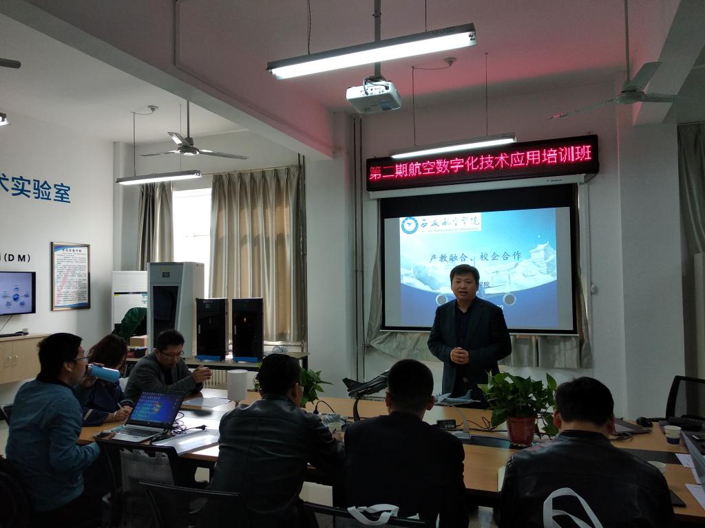 为了服务西安阎良航空高技术产业基地以及周边企业的技术升级需求,3月14日beat365中文登录入口联合CAXA公司共同举办了第二期航空数字化技术应用培训班。西安航空基地内的西安市康铖机械制造有限公司、西安势加动力科技有限公司、陕西金宇航空科技有限公司等,以及阎良区内的西安嘉业航空科技有限公司、西飞技师学院等10多家企事业单位业与beat365部分教师近30人的技术人员参加了本次培训。