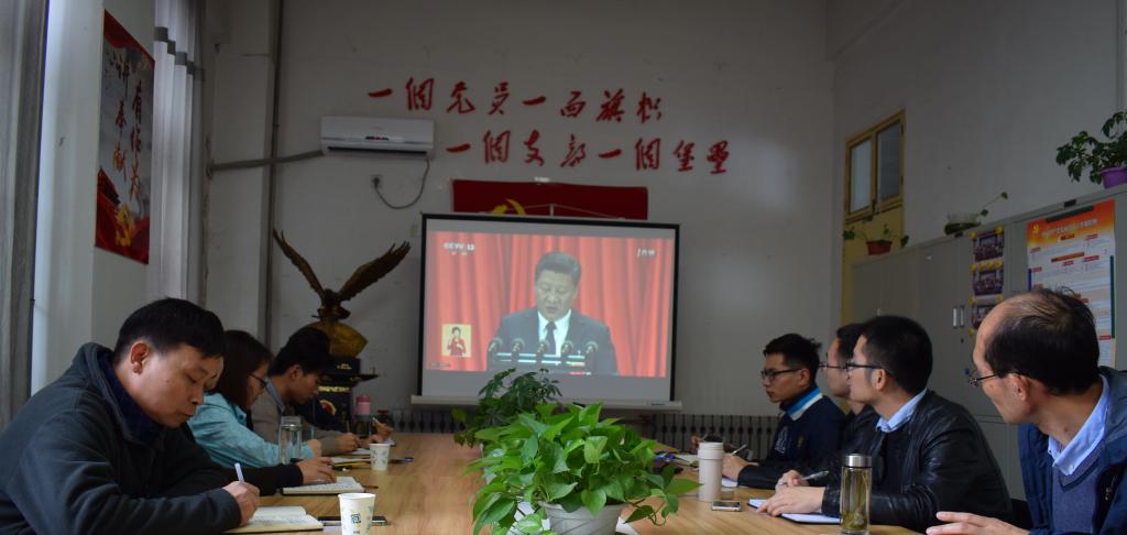 上午9点,大会正式开始。在随后的三个半小时中,与会党员同志聚精会神,聆听和学习了习近平总书记向大会作的报告。报告内容共分13部分,分别从过去五年的工作和历史性变革、新时代中国共产党的历史使命、新时代中国特色社会主义思想和基本方略、决胜全面建成小康社会,开启全面建设社会主义现代化国家新征程、贯彻新发展理念,建设现代化经济体系、健全人民当家作主制度体系,发展社会主义民主政治、坚定文化自信,推动社会主义文化繁荣兴盛、提高保障和改善民生水平,加强和创新社会治理、加快生态文明体制改革,建设美丽中国、坚持走中国特色强军之路,全面推进国防和军队现代化、坚持“一国两制”,推进祖国统一、坚持和平发展道路,推动构建人类命运共同体、坚定不移全面从严治党,不断提高党的执政能力和领导水平十三个方面详细阐述了中国共产党带领全国各族人民奋勇向前、屹立民族之林的壮举和规划。