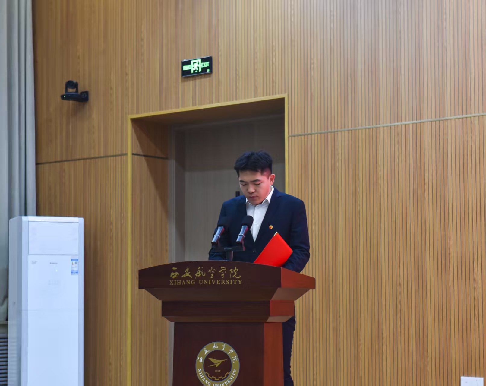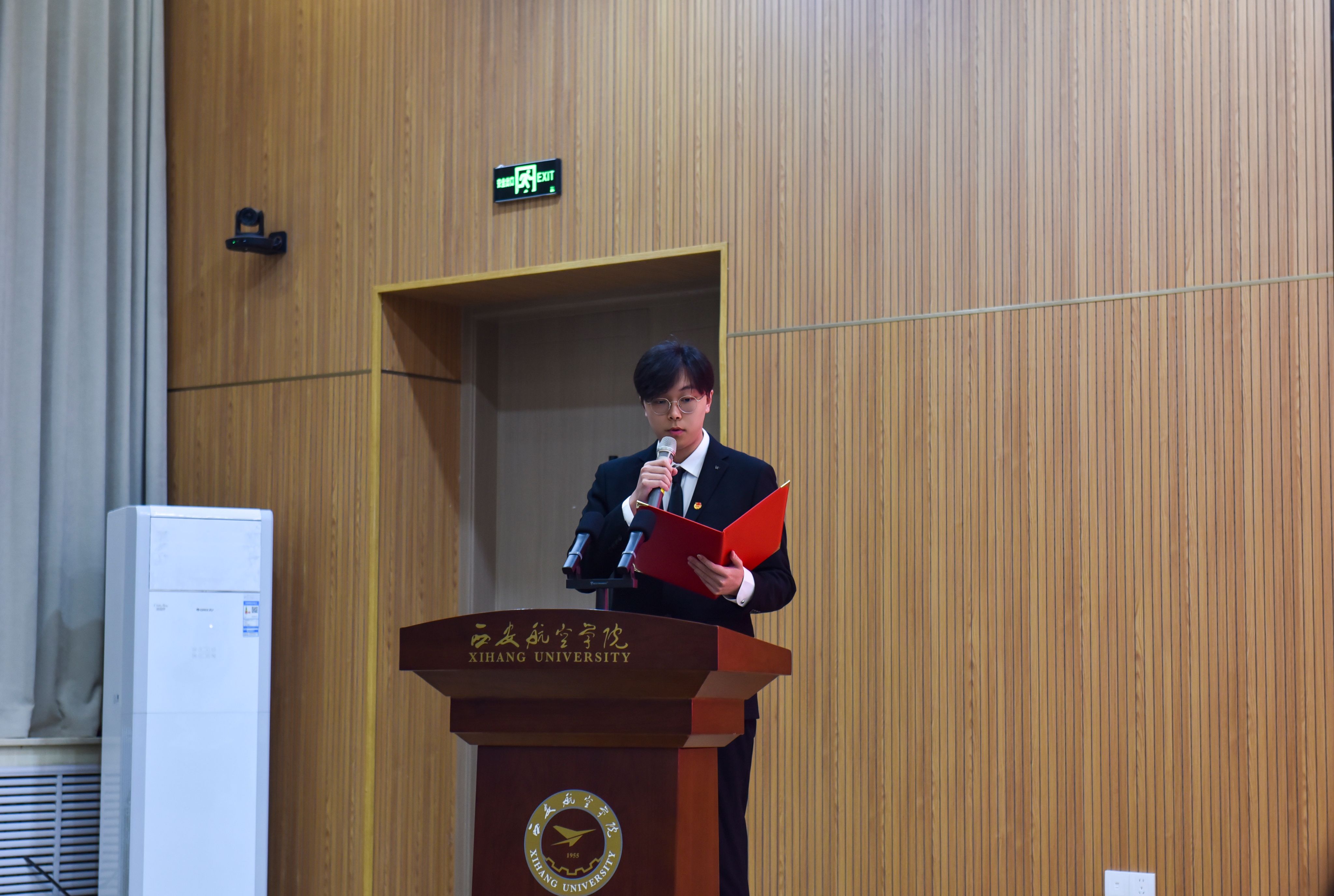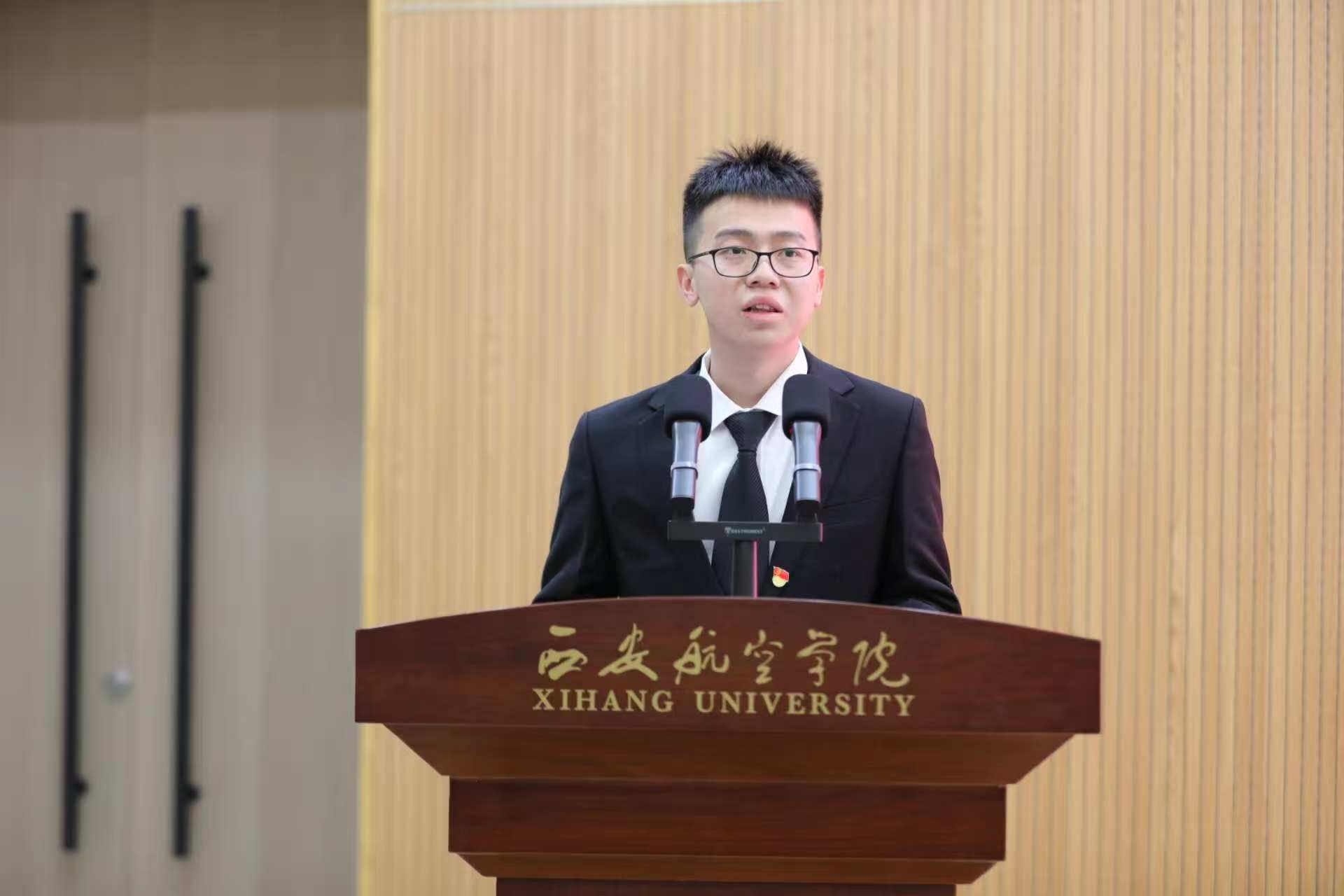 作为第十六届团学干部代表,鲁鹏帆同学在会议上发言,他汇报了近期团学工作情况,并就未来工作提出规划与展望,展现出新一届学生干部的信心与决心。