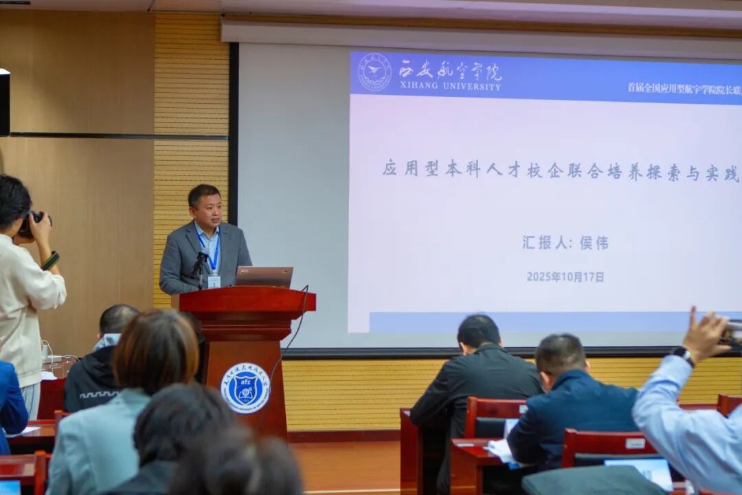 beat365中文登录入口(低空技术与工程学院)副院长侯伟参加此次会议,并代表学校做“应用型本科人才校企联合培养探索与实践”报告,将beat365在校企合作育人过程中的经验和做法分享给兄弟院校,特别是“3+1”校企联合培养的成效值得兄弟院校借鉴、推广。也充分彰显了beat365建校70年以来的办学积淀,以及升本13年来的办学成果。