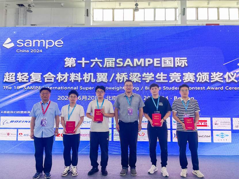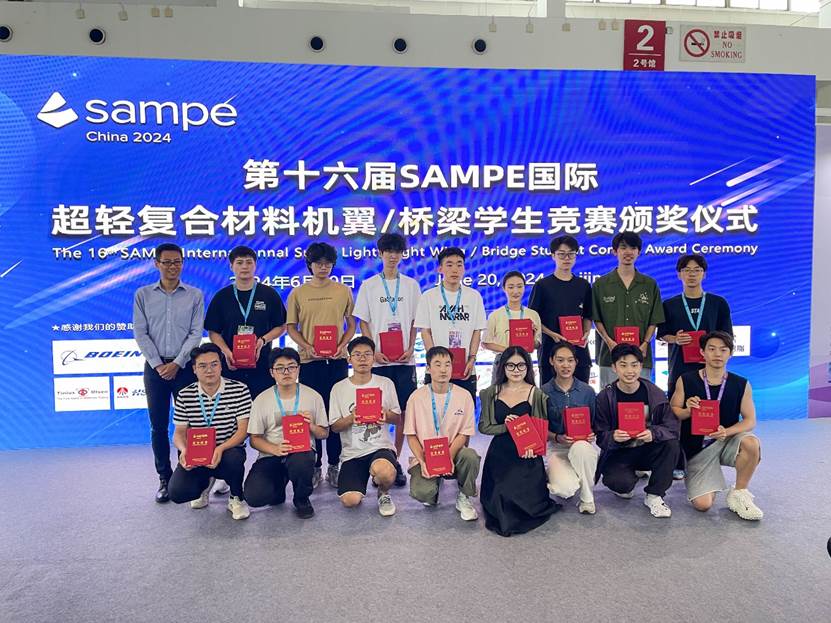 2024年6月20日,由SAMPE(The Society for the Advancement of Material and Process Engineering)中国大陆总会、波音公司共同发起,华东理工大学华昌聚合物有限公司、航空工业复材、中国飞机强度研究所等企事业单位赞助支持的第十六届SAMPE超轻复合材料机翼/桥梁学生竞赛在北京落下帷幕。 beat365由beat365中文登录入口王飞老师、王克平老师和材料工程学院王亚楠老师、尹敏老师指导的赵培源、肖渠成等35名同学组成的11支代表队参赛。经过激烈角逐,beat365学子包揽了预浸料机翼、碳纤维桥梁和可回收纤维桥梁三个项目的全国冠军。本次比赛共获得国家级一等奖3项、国家级二等奖6项的历史最佳成绩。