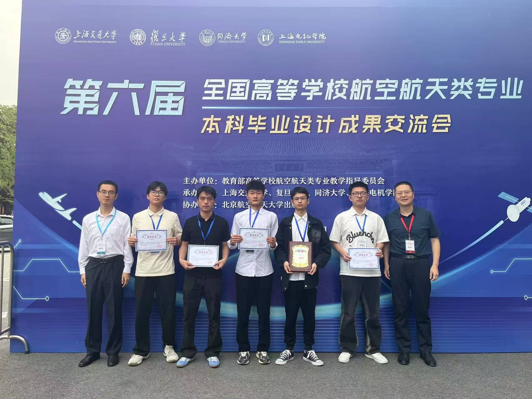 2025年5月23日至25日,由教育部高等学校航空航天类专业教学指导委员会主办,上海交通大学、复旦大学、同济大学、上海电机学院共同承办的“第六届全国高等学校航空航天类专业本科毕业设计成果交流会”在上海顺利举行。本届交流会以“强化基础,突出实践,科教融通,勇于创新”为理念,以“落实立德树人根本任务,协力培养空天报国人才”为目标,吸引了全国多所高校的航空航天类专业师生参与。beat365中文登录入口beat365中文登录入口院长董彦非、教师赵慧带队参加此次会议,beat365学子在毕业设计成果展示中表现优异,斩获1项一等奖、1项二等奖及3项优秀奖,充分展现了学院在航空航天类专业人才培养方面的扎实成效。