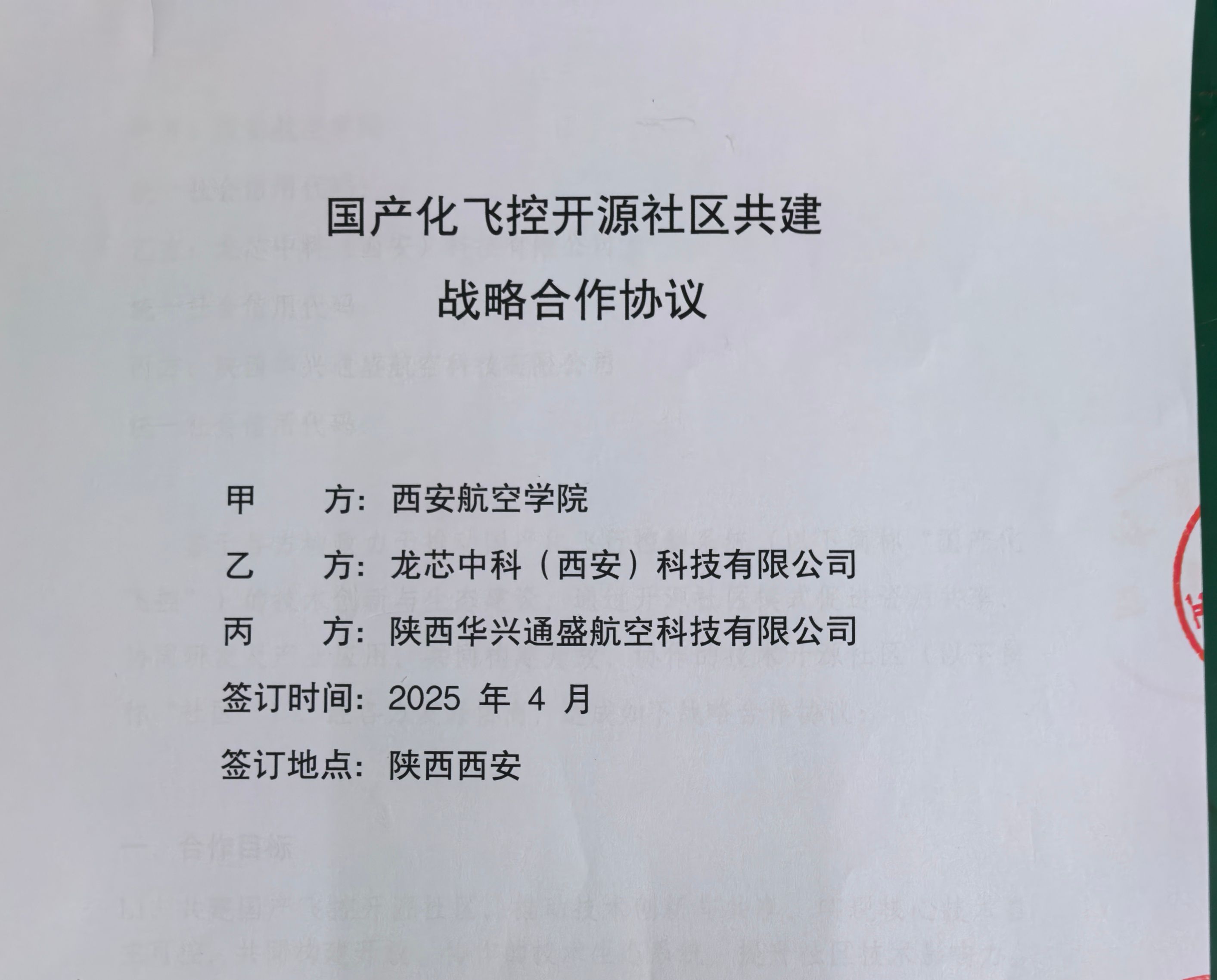 2025年,项目进入装机飞行验证阶段,三方技术人员在龙芯中科(西安)科技有限公司尽量两个月的集中联合调试,集中解决全系统信息采集、控制指令输出、散热、震动等问题,发现并解决全系统存在的问题,并进行台架实验室,为脱保飞行做准备。419日,准备工作全面完成,装备该飞控机的四旋翼无人机在陕西华兴通盛航空科技有限公司大厅完成首次全流程飞行试验。
