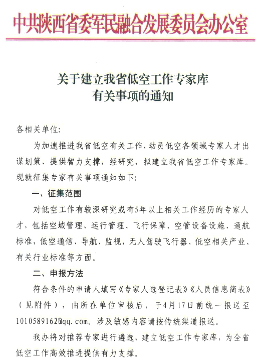 关于建立我省低空工作专家库有关事项的通知