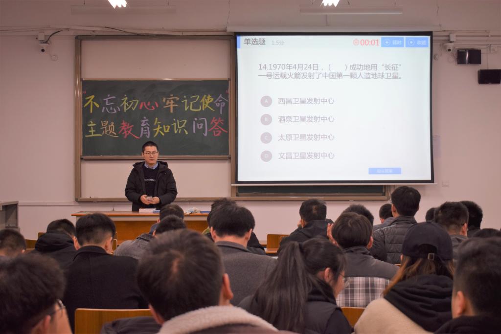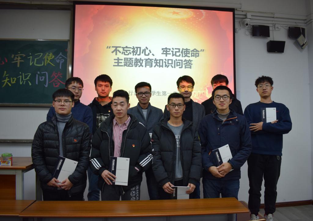 “温故而知新,可以为师矣”。为了提高党员和预备党员对“不忘初心、牢记使命”主题教育知识理解水平,提升思想觉悟,对各党员和预备党员前期学习成果进行了解,掌握各党员及预备党员对主题教育知识的学习动态,beat365学生第一党支部于11月27日晚上19点在阎教1128成功举办了“不忘初心、牢记使命”主题教育知识问答活动,本次活动由学生第一支部宣传委员李亮同志主持。