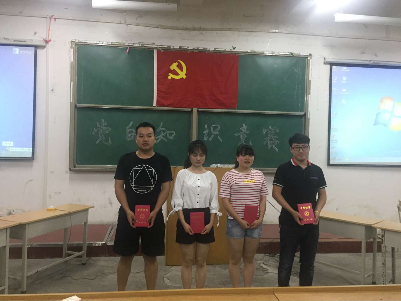 为了活跃支部文化氛围,更好的促进积极分子间的交流,激发积极分子学习党规党章、向党组织靠拢的积极性,学生党支部于6月18日晚在阎阶二举办了党的知识竞赛。