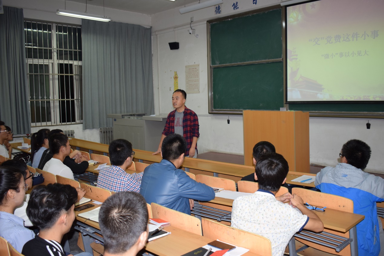 为扎实巩固“两学一做”学习成果,充分调动学生党员积极性,学生党支部于9月25日晚在阎教楼1130组织党员学习习近平总书记在庆祝建军90周年大会上的讲话,并由学生优秀党员郑星为全体党员讲授党课。