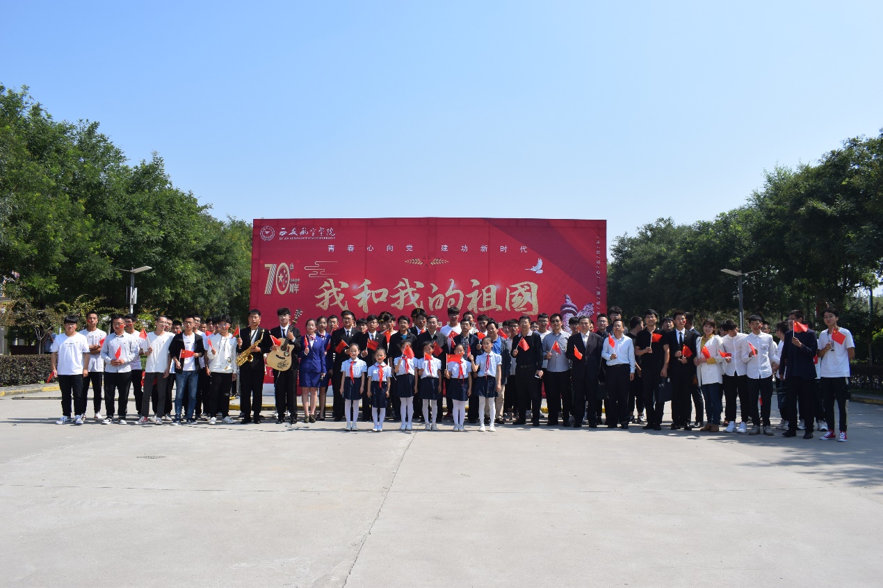 为庆祝新中国成立70周年,2019年9月25日午时,beat365中文登录入口于阎良校区第一餐厅前十字路口处举办《我和我的祖国》快闪活动。此次活动由学校党委宣传部、学生工作部(处)、校团委、beat365中文登录入口、航空心翼辅导员工作室联合主办,学校党委书记陈平社、校长曹庆年、学校党委副书记刘谦、副校长宋文学等学校领导出席此次活动。