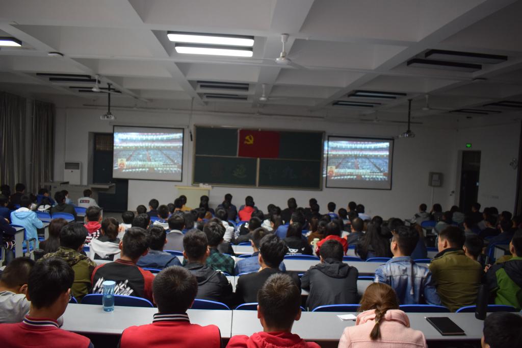 与此同时,beat365入党积极分子与学生会干部于晚18:30在阶梯二教室组织观看十九大,大家以认真的态度,庄重的姿态,崭新的面貌迎接十九大的召开。