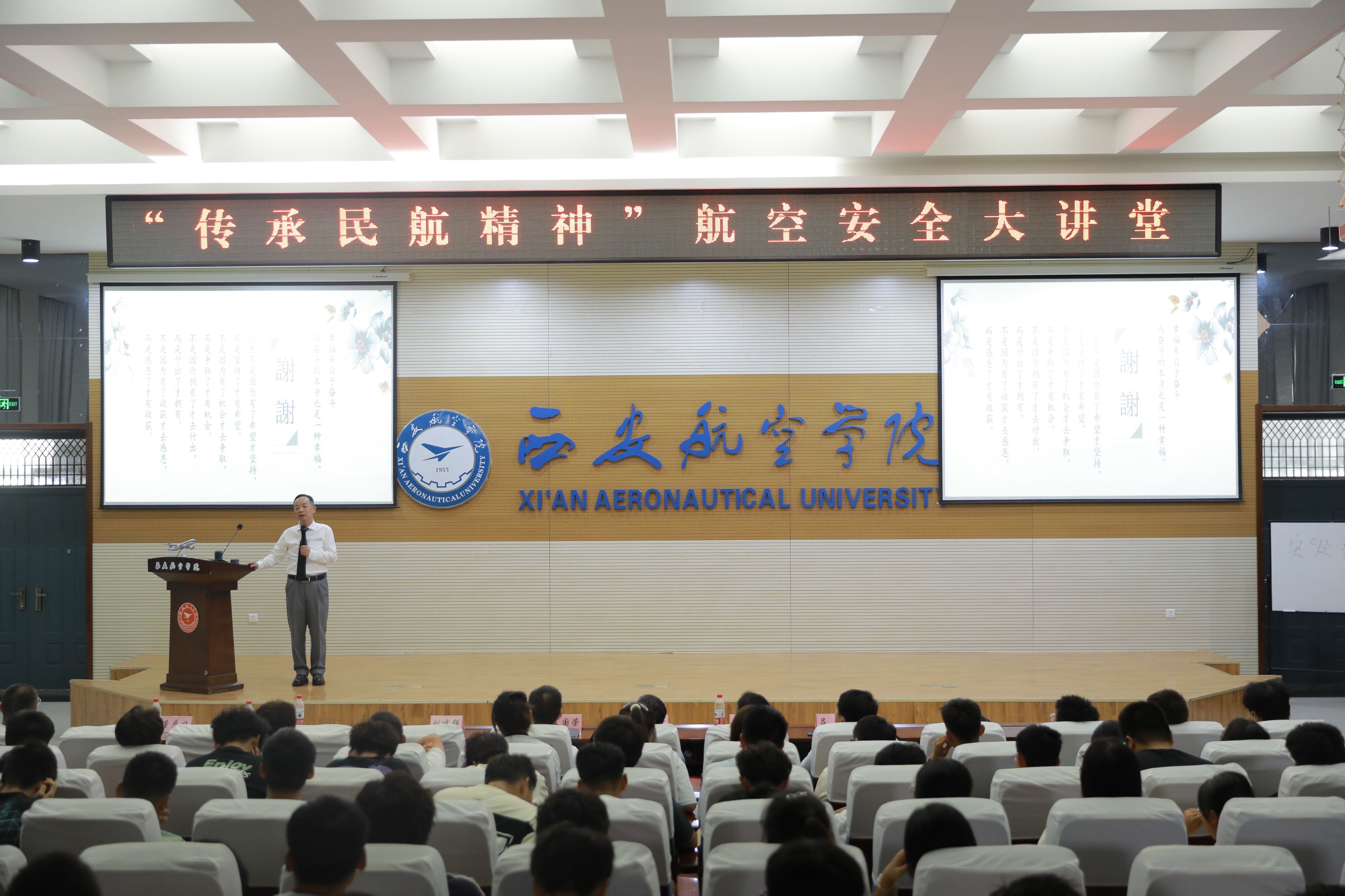 南方航空公司珠海公司副总经理(原南航西安分公司副总经理)曹佳应邀给新生带来了一场主题为“传承民航精神”的讲座。学校党委委员、副校长宋文学、四川航空纪委书记兼机务副总王国荣、南航西安分公司飞机维修厂副厂长刘涛、beat365中文登录入口党总支书记刘建强、院长董彦非、民航学院院长吕毅,以及beat365中文登录入口、民航学院2024级全体新生共计380余人齐聚一堂,共同聆听这场盛宴。讲座由董彦非主持。