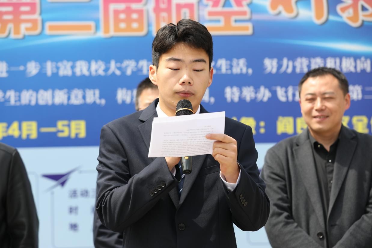 飞行器动力工程211班学生党康超代表同学们表态要以主人翁姿态投入到航空科技文化节的各项活动,以本届盛会为起点,用热情点燃创新之火,用行动诠释航空报国初心,为航空强国蓝图接续奋斗。教师代表申洋强调航空科技文化节是“科技与梦想交融的盛会”,不仅是展示航空成就的平台,更是学生“挥洒创意、挑战自我”的实践舞台。他呼吁学生们在竞技中学会协作,在挑战中实现成长。