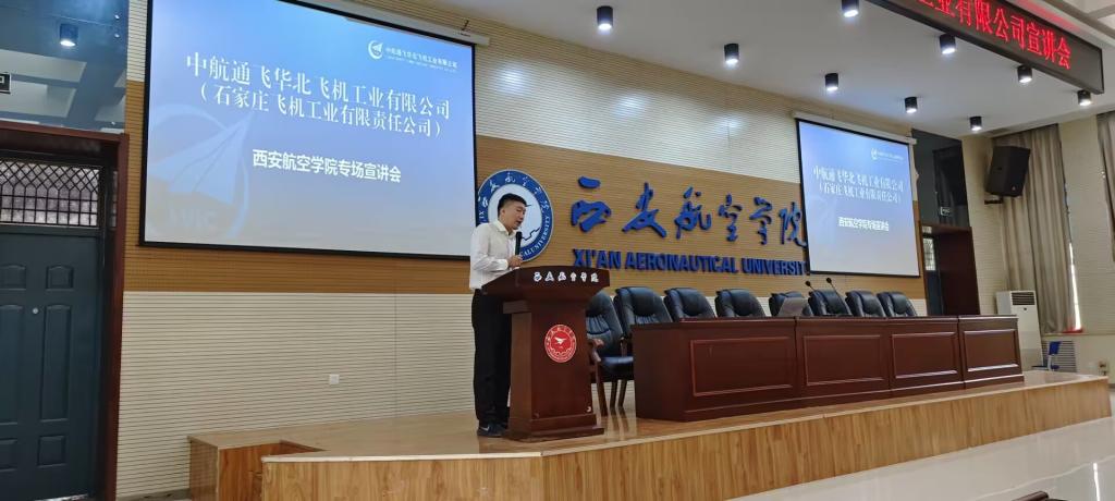 beat365中文登录入口于2023年9月12日15点在报告厅开展了企业宣讲活动,本次beat365邀请的是中航通飞华北飞机工业有限公司来beat365进行招聘宣讲。