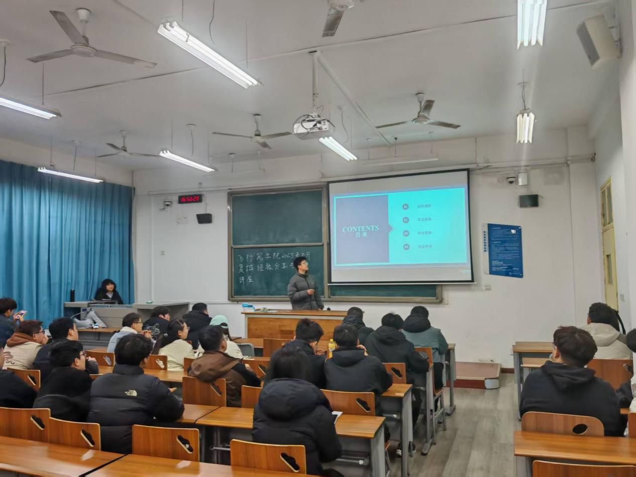 讲座伊始,学院党总支书记刘建强进行考研复试动员。刘书记回顾了学院近年来的考研成果,指出在师资紧张、资源有限的情况下,师生共同努力,2025届有41名学生初试过线。学院始终把学生发展放在首位,通过“一对一导师推荐”“院校资源精准对接”等措施,为学生拓宽升学途径。他以校友的成功案例激励学生,强调考研不仅是学历的提升,更是意志的磨炼,鼓励同学们坚定目标、勇于拼搏,学院也将全力支持学生的考研之路。