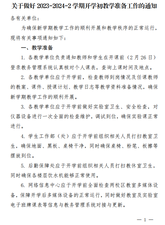 关于做好2023-2024-2学期开学初教学准备工作的通知